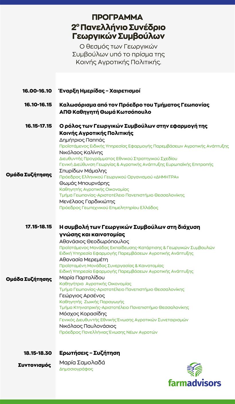 Κεντρικό θέμα της φετινής διοργάνωσης είναι «Ο θεσμός των Γεωργικών Συμβούλων υπό το πρίσμα της Κοινής Αγροτικής Πολιτικής (ΚΑΠ)». Οι συμμετέχοντες θα έχουν την ευκαιρία να αναλύσουν πώς οι νέες κατευθύνσεις της ΚΑΠ επηρεάζουν τη συμβουλευτική υποστήριξη των παραγωγών και ποιες είναι οι προκλήσεις για τον ψηφιακό και πράσινο μετασχηματισμό των εκμεταλλεύσεων.