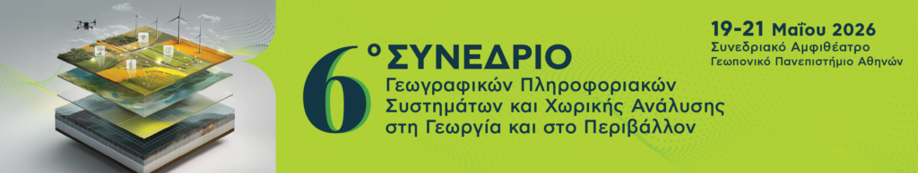 Η Ερευνητική Μονάδα Γεωγραφικών Πληροφοριακών Συστημάτων του Γεωπονικού Πανεπιστημίου Αθηνών, σε συνεργασία με την Ελληνική Εταιρεία Γεωγραφικών Συστημάτων Πληροφοριών, σας προσκαλούν στο 6ο Συνέδριο Γεωγραφικών Πληροφοριακών Συστημάτων και Χωρικής Ανάλυσης στη Γεωργία και στο Περιβάλλον, το οποίο θα διεξαχθεί στις 19, 20 και 21 Μαΐου 2026 στο Συνεδριακό Αμφιθέατρο του Γεωπονικού Πανεπιστημίου Αθηνών.
