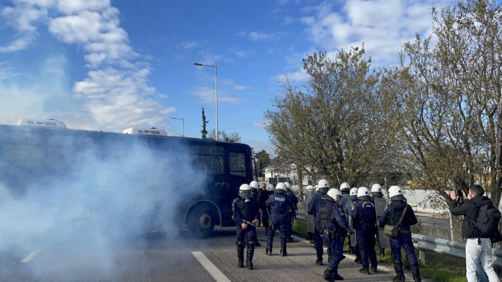 Ένταση μεταξύ αγροτών και αστυνομίας. Έπεσαν καπνογόνα το μεσημέρι κατά τις 13.00 στον κόμβο Πλατυκάμπου στην παλιά εθνική οδό. Oι αψιμαχίες έγιναν, ξεκίνησαν όταν προσπάθησαν να ανέβουνε στη νέα εθνική οδό και να αποκλείσουν τον εθνικό οδικό άξονα. Μάλιστα υήρξε και προσαγωγή ενός αγρότη.