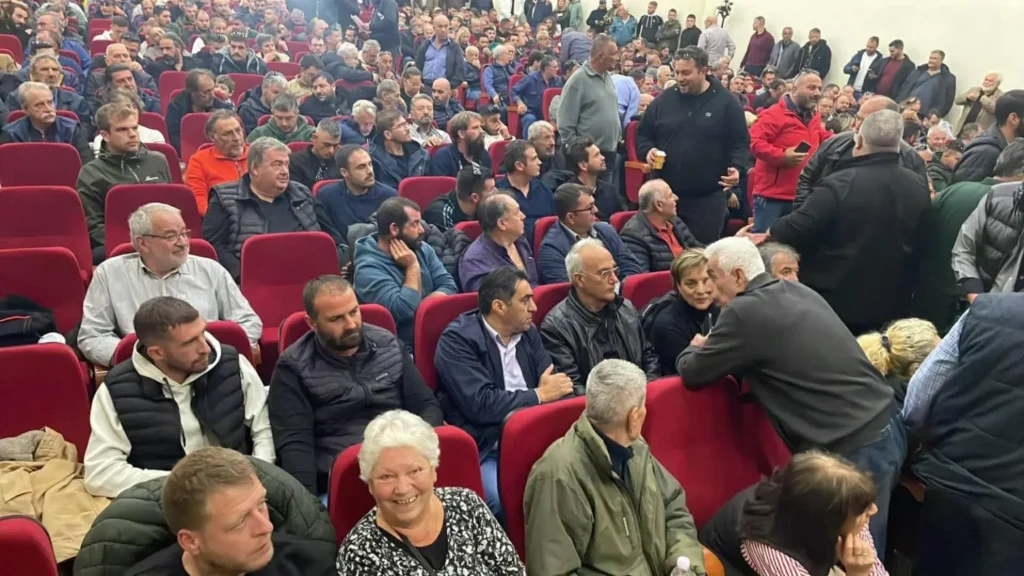 Κατάμεστη είναι η αίθουσα του Πολιτιστικού Κέντρου Νίκαιας από αγρότες και κτηνοτρόφους που έχουν ταξιδέψει στη Θεσσαλία από όλη την Ελλάδα και συμμετέχουν στην πανελλαδική σύσκεψη που διοργανώνει η Πανελλαδική Επιτροπή των Μπλόκων.