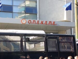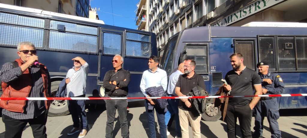 Μετά την συνάντηση στο ΥΠΑΑΤ ακολούθησε πορεία προς τον ΟΠΕΚΕΠΕ του κομβόι των περίπου 2500 γεωργών και κτηνοτρόφων με συνθήματα.
