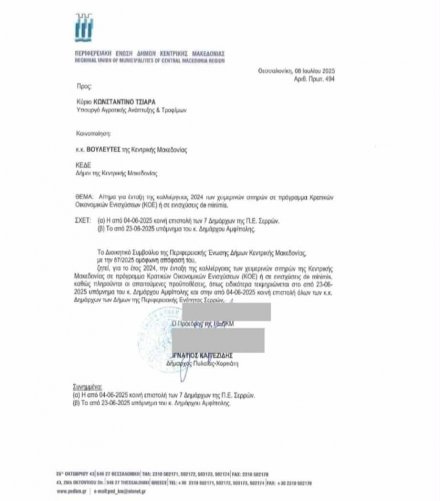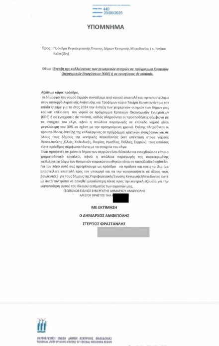 «Κοιν: Πρόεδρο Κεντρικής Ένωσης Δήμων Ελλάδας ΚΕΔΕ (κ. Κυρίζογλου Λάζαρο).