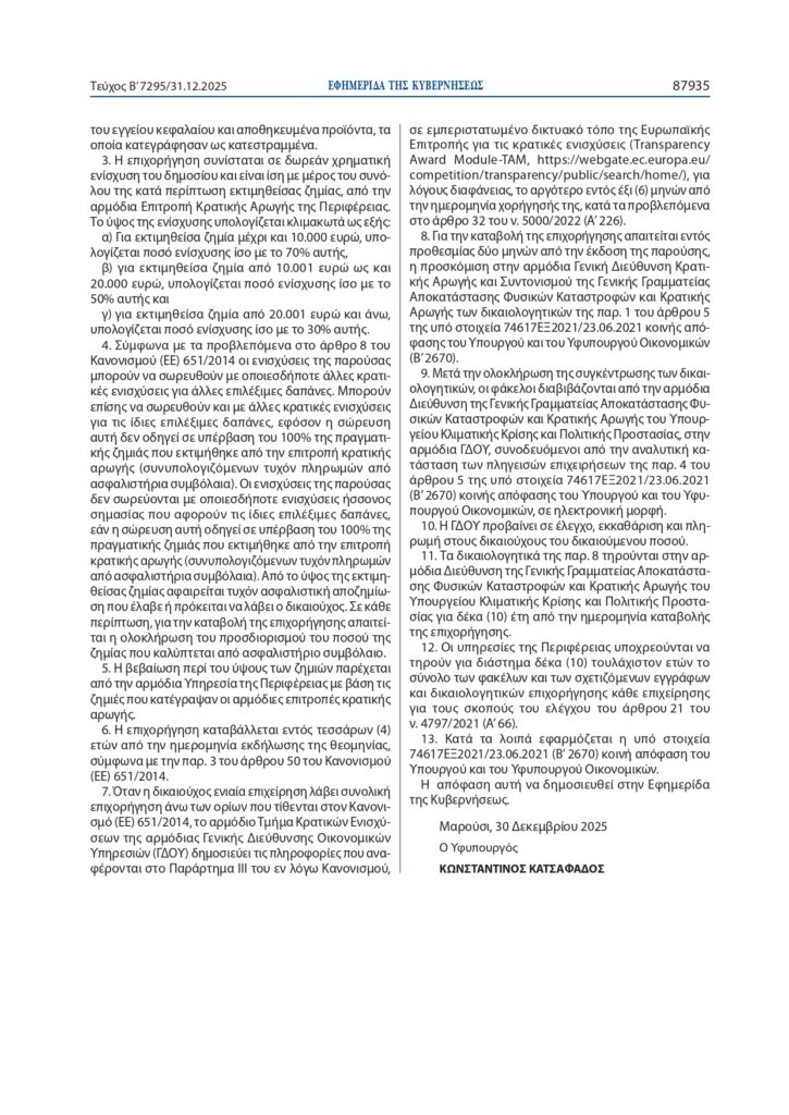 γ) για εκτιμηθείσα ζημία από 20.001 ευρώ και άνω, υπολογίζεται ποσό ενίσχυσης ίσο με το 30% αυτής