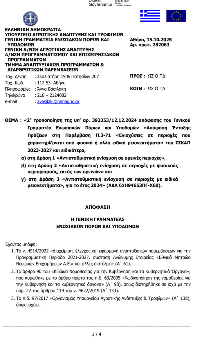 - Την τροποποίηση της υπ’ αρ. 392353/12.12.2024 απόφασης ένταξης πράξεων στην