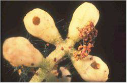 την κάτω επιδερμίδα των φύλλων, ενώ αφήνουν άθικτη την πάνω επιδερμίδα. Σε έντονες