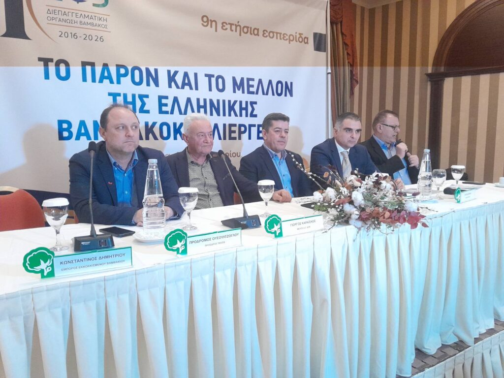 Η εκδήλωση, με τίτλο «Το παρόν και το μέλλον της ελληνικής βαμβακοκαλλιέργειας», συγκέντρωσε παραγωγούς, εκκοκκιστές, εμπόρους, εκπροσώπους φορέων της αλυσίδας βάμβακος και επιχειρήσεις του κλάδου, επιβεβαιώνοντας το έντονο ενδιαφέρον για τις εξελίξεις σε μια ιδιαίτερα απαιτητική περίοδο για την καλλιέργεια.