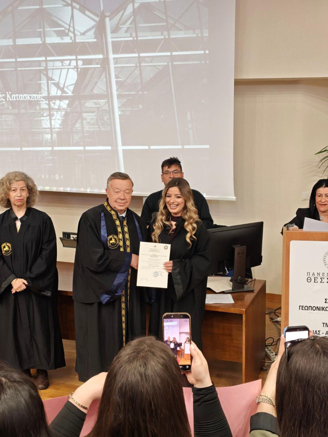 Παρουσία του Προέδρου του Τμήματος, Καθηγητού Αλέξανδρου Παπαχατζή και σε κλίμα χαράς και συγκίνησης πραγματοποιήθηκε σήμερα Παρασκευή 2 Απριλίου, στο Συγκρότημα της “Γαιόπολις” στην Λάρισα, η τελετή ορκωμοσίας στο Τμήμα Γεωπονίας – Αγροτεχνολογίας του Πανεπιστημίου Θεσσαλίας, σηματοδοτώντας την ολοκλήρωση τόσο του προπτυχιακού επιπέδου σπουδών για 24 νέους αποφοίτους, αλλά και 8 φοιτητές των δύο Προγραμμάτων Μεταπτυχιακών Σπουδών.