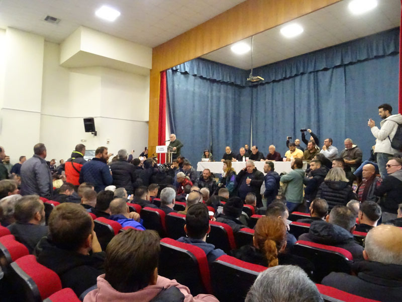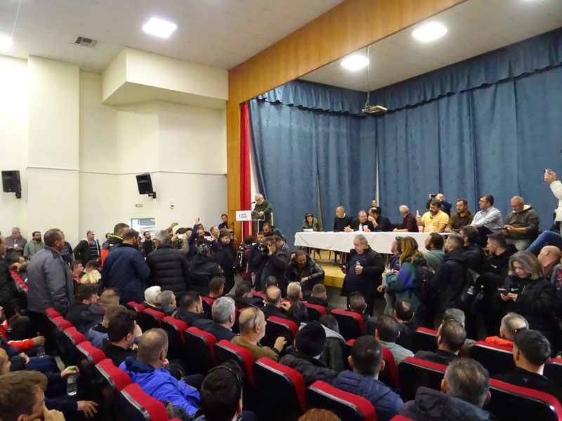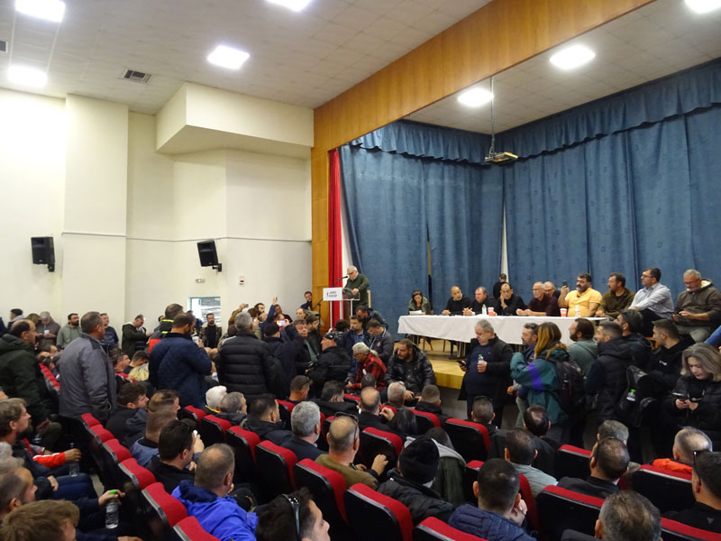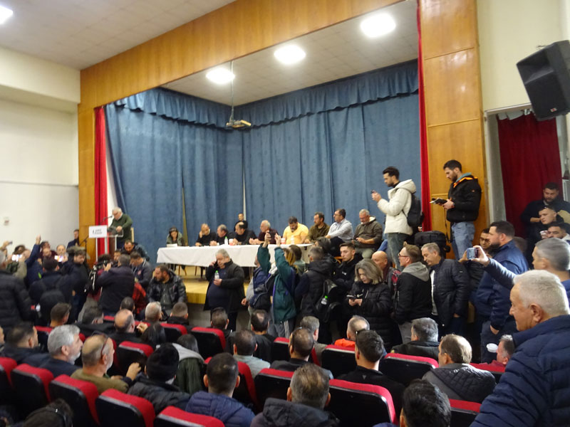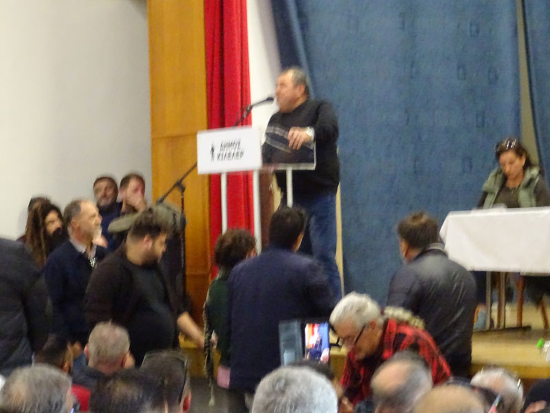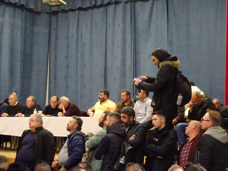 Η αίθουσα είναι γεμάτη από κόσμο, πολλοί όρθιοι μέσα και έξω από την αίθουσα. Μεγάλη συμμετοχή, μεγάλος παλμός, άνδρες , γυναίκες , αγρότες από παντού είναι σήμερα στη Νίκαια 13/12