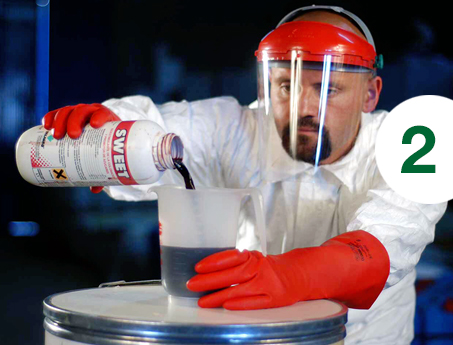 Προστατευθείτε κατά την παρασκευή του ψεκαστικού υγρού, τουλάχιστον με: φόρμα εργασίας, γάντια, προσωπίδα και μπότες.