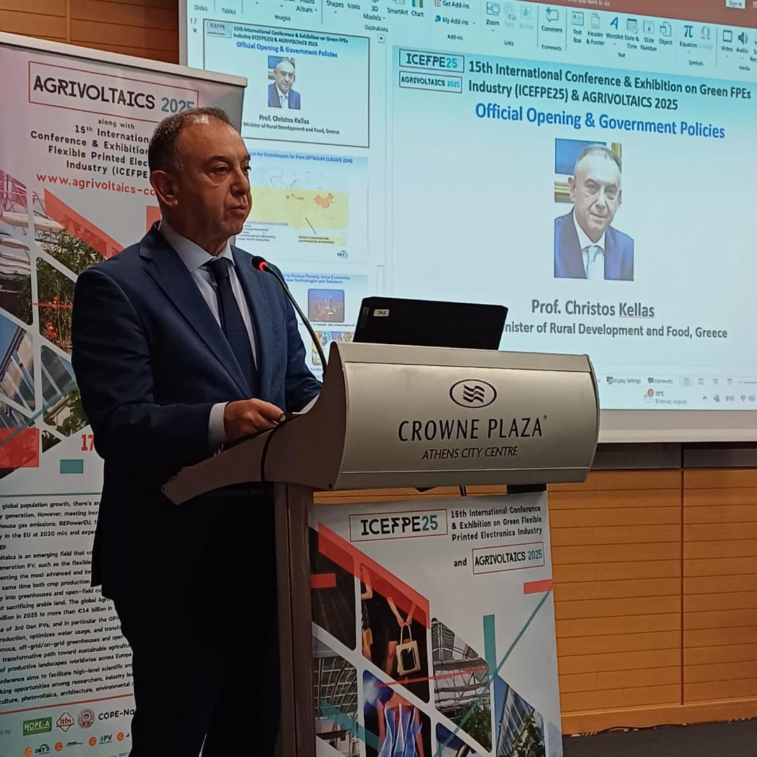 Ο ΥφΑΑΤ, Χρ. Κέλλας στο Διεθνές Συνέδριο “AGRIVOLTAICS 2025” -Στο επίκεντρο η καινοτομία για την πράσινη γεωργία
