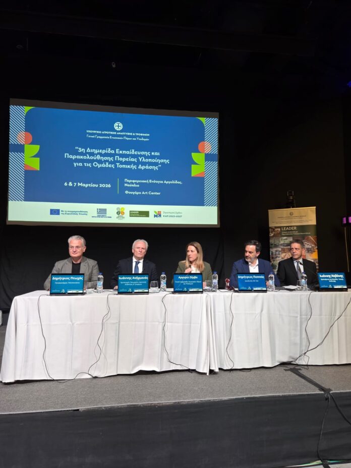Με επιτυχία πραγματοποιήθηκε στο Ναύπλιο, στις 6 και 7 Μαρτίου 2026, η 3η Διημερίδα Εκπαίδευσης και Παρακολούθησης Πορείας Υλοποίησης για τις Ομάδες Τοπικής Δράσης, που διοργάνωσε η Γενική Γραμματεία Ενωσιακών Πόρων και Υποδομών του Υπουργείου Αγροτικής Ανάπτυξης και Τροφίμων με τη συμβολή του Εθνικού Δικτύου ΚΑΠ.