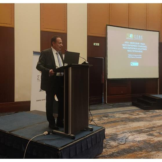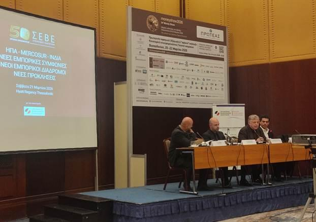 - Στο πλαίσιο του 34ου Money Show Θεσσαλονίκης, ο ΣΕΒΕ – Σύνδεσμος Εξαγωγέων, σε συνεργασία με το Ελληνο-Ιταλικό Επιμελητήριο Θεσσαλονίκης και με την υποστήριξη του Οργανισμού Βιομηχανικής Ιδιοκτησίας (ΟΒΙ), διοργάνωσε στις 21 Μαρτίου μια ιδιαίτερα επίκαιρη εκδήλωση με τίτλο «ΗΠΑ, MERCOSUR, ΙΝΔΙΑ: Νέες εμπορικές συμφωνίες, νέοι εμπορικοί διάδρομοι, νέες προκλήσεις», αναδεικνύοντας τις σύγχρονες εξελίξεις και τις προοπτικές που διαμορφώνονται στο διεθνές εμπορικό περιβάλλον. Κατά τον εναρκτήριο χαιρετισμό του, ο κ. Νικόλαος Μαργαρόπουλος, Πρόεδρος του Ελληνο-Ιταλικού Επιμελητηρίου Θεσσαλονίκης, υπογράμμισε τη σημασία της συνεργασίας μεταξύ φορέων για την ενίσχυση της εξωστρέφειας και της διεθνούς παρουσίας των ελληνικών επιχειρήσεων. Όπως ανέφερε, τέτοιες συνέργειες συμβάλλουν ουσιαστικά στη δημιουργία νέων ευκαιριών, στη μεταφορά τεχνογνωσίας και στην καλύτερη αξιοποίηση των δυνατοτήτων που προσφέρουν οι διεθνείς αγορές, ιδιαίτερα σε ένα περιβάλλον αυξημένων προκλήσεων αλλά και σημαντικών προοπτικών για την ελληνική οικονομία. Το Summit επίσης προλόγισε ο Πρόεδρος του ΣΕΒΕ, κ. Συμεών Διαμαντίδης, ο οποίος ανέδειξε τη σημασία των πρόσφατων εξελίξεων στο διεθνές εμπόριο για το σύνολο της ελληνικής οικονομίας, επισημαίνοντας ότι το παγκόσμιο εμπορικό περιβάλλον μεταβάλλεται διαρκώς, δημιουργώντας ένα σύνθετο μείγμα προκλήσεων και ευκαιριών για τις εξαγωγικές επιχειρήσεις. Όπως υπογράμμισε, το 2025 οι συνολικές ελληνικές εξαγωγές ανήλθαν σε €48,5 δισ., ενώ οι εισαγωγές διαμορφώθηκαν σε €81,9 δισ., με το εμπορικό ισοζύγιο να παραμένει ελλειμματικό, παρά τη σχετική βελτίωση. Τα στοιχεία αυτά, όπως σημείωσε, αποτυπώνουν τόσο τη δυναμική όσο και τις διαρθρωτικές προκλήσεις της ελληνικής οικονομίας, αναδεικνύοντας την ανάγκη για περαιτέρω ενίσχυση της παραγωγικής βάσης, της ανταγωνιστικότητας και της διεθνούς παρουσίας των ελληνικών επιχειρήσεων. Παράλληλα, αναφερόμενος στις αγορές των ΗΠΑ, της MERCOSUR και της Ινδίας, τόνισε ότι οι νέες εμπορικές συμφωνίες και οι μεταβολές στο δασμολογικό περιβάλλον δημιουργούν πρόσθετες δυνατότητες και ευκαιρίες για την ενίσχυση της εξωστρέφειας. Τους χαιρετισμούς έκλεισε ο Υφυπουργός Εξωτερικών κ. Χάρης Θεοχάρης, τονίζοντας ότι σε μια περίοδο έντονων γεωοικονομικών ανακατατάξεων, η Ελλάδα ενισχύει συστηματικά την εξωστρέφειά της, αξιοποιώντας στρατηγικές συνεργασίες με τις Ηνωμένες Πολιτείες και αναπτύσσοντας δυναμικά τη σχέση της με αγορές υψηλής προοπτικής, όπως η Ινδία. Παράλληλα, ευρωπαϊκές συμφωνίες όπως αυτή με τη Mercosur δημιουργούν νέες ευκαιρίες για τα ελληνικά προϊόντα και ενισχύουν την ανταγωνιστικότητα των επιχειρήσεών μας. Η ελληνική ναυτιλία και τα logistics διαδραματίζουν καθοριστικό ρόλο στις νέες εμπορικές ροές, αναδεικνύοντας τη χώρα σε αξιόπιστο κόμβο συνδεσιμότητας, επενδύσεων και σταθερότητας. Με συνεκτική στρατηγική οικονομικής διπλωματίας, ενισχύουμε τη θέση της Ελλάδας ως αξιόπιστου εταίρου και πυλώνα σταθερότητας στην ευρύτερη περιοχή. Στη συνέχεια, τον λόγο έλαβε ο Εκτελεστικός Αντιπρόεδρος του ΣΕΒΕ, κ. Παναγιώτης Χασάπης, ο οποίος παρουσίασε την πορεία των ελληνικών εξαγωγών πριν και μετά τις πρόσφατες εμπορικές συμφωνίες, καθώς και τις προοπτικές που διαμορφώνονται, βάσει της ανάλυσης του ΙΕΕΣ – Ινστιτούτου Εξαγωγικών Ερευνών και Σπουδών του ΣΕΒΕ. Όπως ανέφερε, το 2025