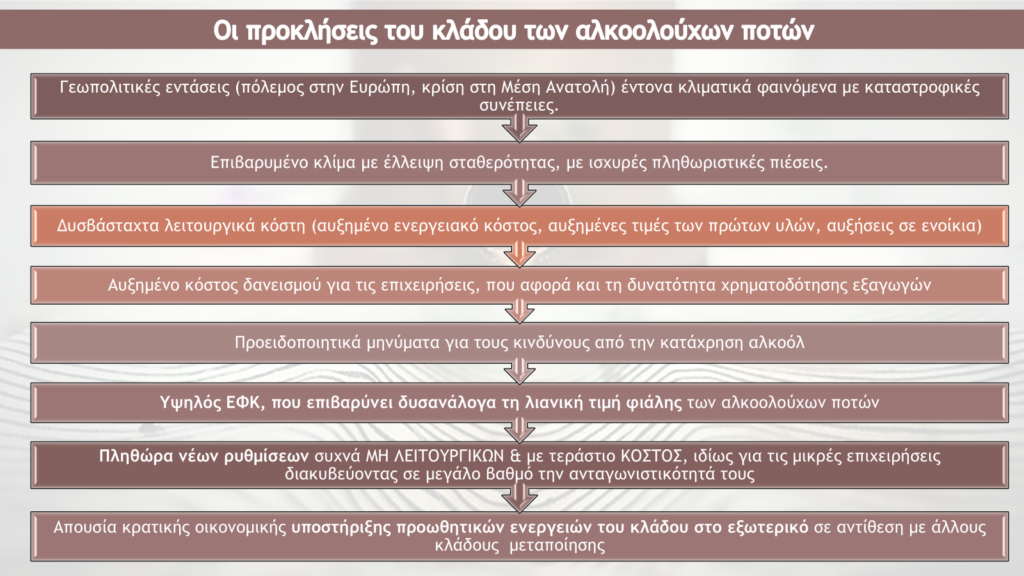 Ωστόσο , το 2024 αποτέλεσε χρονιά ανάκαμψης και ενίσχυσης της παραγωγής και των εξαγωγών της ελληνικής ποτοποιίας. Παρά τις συνεχείς πιέσεις στο κόστος παραγωγής, τον υψηλό πληθωρισμό και τις αυξανόμενες γεωπολιτικές εντάσεις, η ελληνική παραγωγή για άλλη μια χρονιά , απέδειξε την ανθεκτικότητά της».