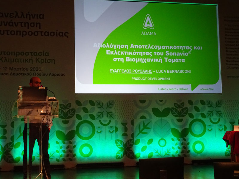 11:40 – 12:00: Αξιολόγηση της αποτελεσματικότητας και εκλεκτικότητας του Sonavio® στη βιομηχανική τομάτα. Ε. Ρούσαλης και L. Bernasconi, ADAMA Hellas.