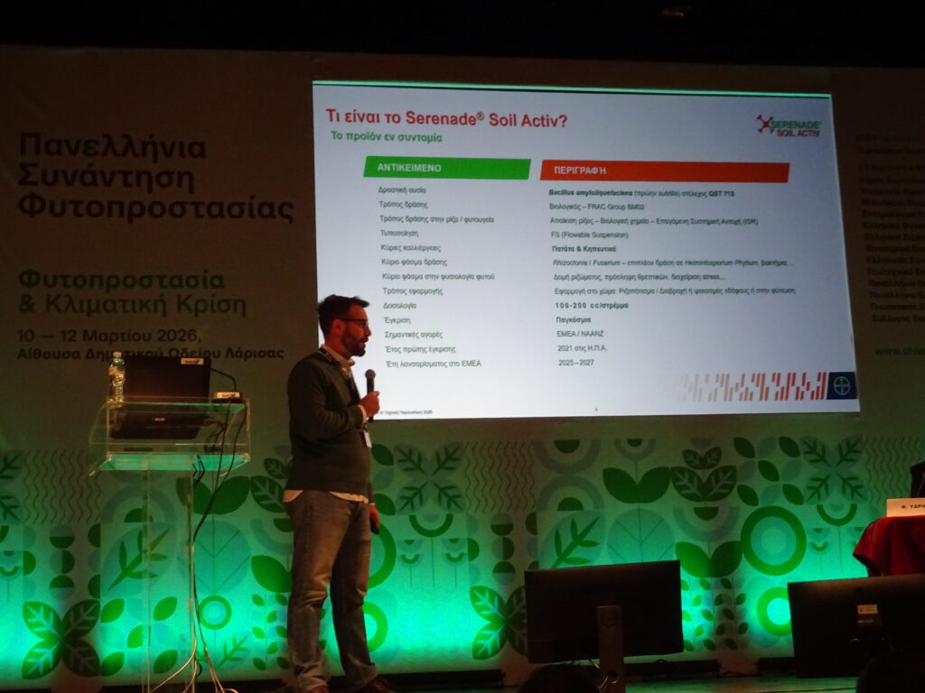 12:00 – 12:20: Serenade SOIL ACTIV – υγιές έδαφος για υψηλές αποδόσεις. Α. Γιαλούρης, Bayer Hellas AG.