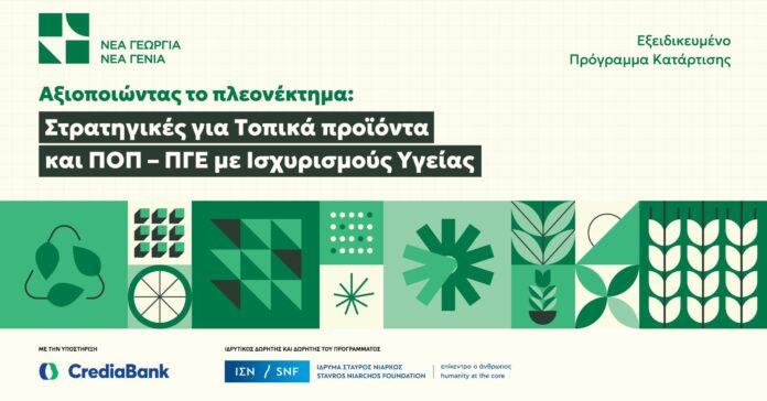 Ο Οργανισμός Νέα Γεωργία Νέα Γενιά ανακοινώνει την έναρξη του νέου προγράμματος κατάρτισης και συμβουλευτικής «Αξιοποιώντας το Πλεονέκτημα: Στρατηγικές για Τοπικά Προϊόντα και ΠΟΠ-ΠΓΕ με Ισχυρισμούς Υγείας», που στοχεύει στην ενίσχυση της ανταγωνιστικότητας των ελληνικών προϊόντων υψηλής διατροφικής αξίας, μέσα από την αξιοποίηση των Ισχυρισμών Υγείας ως εργαλείο διαφοροποίησης, εξωστρέφειας και βιώσιμης ανάπτυξης.