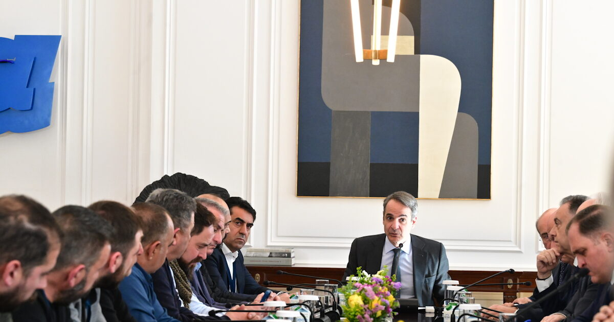 Ο Πρωθυπουργός Κυριάκος Μητσοτάκης συναντήθηκε με εκπροσώπους κτηνοτρόφων στο Μέγαρο Μαξίμου, σε συνέχεια του θεσμικού διαλόγου της κυβέρνησης με παραγωγούς για την επίλυση των ζητημάτων που αντιμετωπίζει ο πρωτογενής τομέας και με επίκεντρο τον σχεδιασμό του μέλλοντός του, ώστε να διασφαλιστεί η εξωστρεφής ανάπτυξή του, η πιστοποίηση και ανταγωνιστικότητα των ελληνικών προϊόντων, αλλά και η ανθεκτικότητα της ελληνικής παραγωγής.