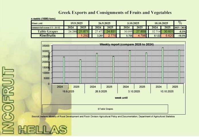 Συνεχίσθηκε η εξαγωγή επιτρ.σταφυλιών με 30.601 τ. -6,5% έναντι 32.714 του 2024