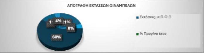 Η έκταση οιναμπέλων στη χώρα μας παρουσιάζεται αυξημένη σε σύγκριση με την αντίστοιχη περσινή δήλωση, μόνο κατά 1.690,6 στρέμματα, αφού θα έπρεπε η αύξηση της έκτασης να είναι ισοδύναμη των νέων φυτεύσεων βάσει Αδειών Φύτευσης, που την προηγούμενη τριετία κατά μέσο όρο ανερχόταν στα 6.300 στρέμματα.