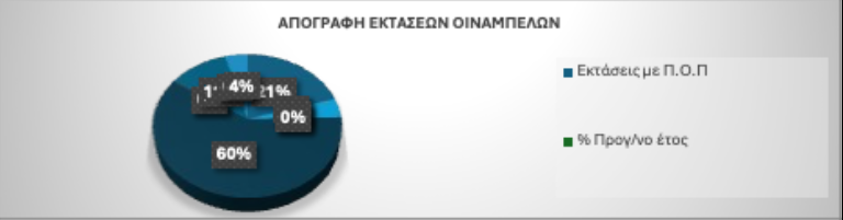 - Οι εκτάσεις φυτεμένες με ποικιλίες που μπορούν να παράγουν οίνους χωρίς Γ.Ε. συμπεριλαμβανομένων των Ποικιλιακών Οίνων, ανέρχονται σε 100.735,52 στρέμματα (περιλαμβάνονται και αυτές που είναι εγκατεστημένες σε περιοχές ΠΟΠ και ΠΓΕ), με ποσοστό 15,50% επί του συνόλου των εκτάσεων. Το ποσοστό αντίστοιχης παραγωγής Οίνων χωρίς Γ.Ε. το 2025 ανέρχεται σε 66,47% επί του συνόλου της οινοπαραγωγής.