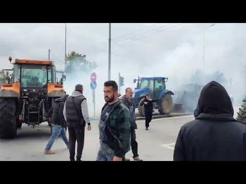 Ένταση μεταξύ αγροτών και αστυνομικών, όταν μερίδα αγροτών επιχείρησε να φτάσει με τα πόδια μέσω του αγροκτήματος του ΑΠΘ στον κόμβο αεροδρομίου και οι αστυνομικοί έκαναν χρήση χημικών και δακρυγόνων