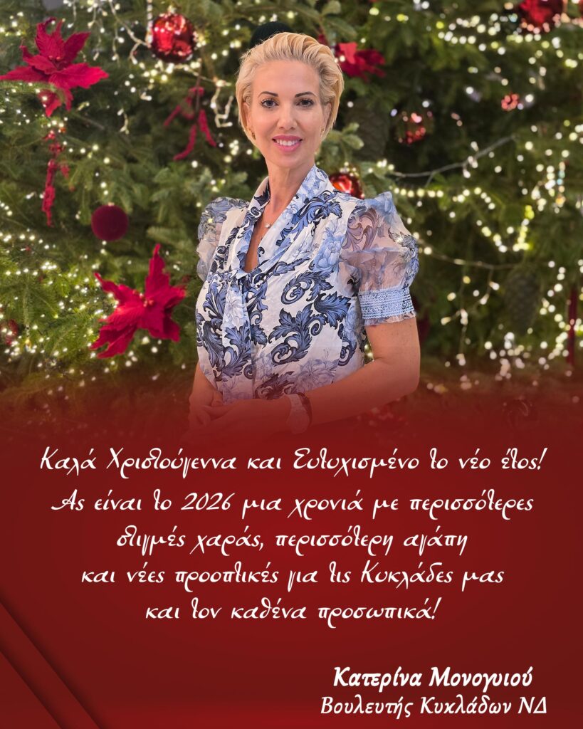 Τη σημασία των μέτρων που ανακοίνωσε ο Πρωθυπουργός Κυριάκος Μητσοτάκης στο πλαίσιο του Κρατικού Προϋπολογισμού 2026 για τη νησιωτική Ελλάδα και ειδικά για τις Κυκλάδες ανέδειξε η Βουλευτής Κυκλάδων της Νέας Δημοκρατίας, Κατερίνα Μονογυιού στην τοποθέτησή της. Όπως τόνισε, πρόκειται για έναν Προϋπολογισμό που λαμβάνει υπόψη τις ιδιαιτερότητες των νησιών, ενισχύει το επενδυτικό περιβάλλον και στηρίζει έμπρακτα τον τουρισμό, που αποτελεί βασικό πυλώνα της τοπικής οικονομίας.